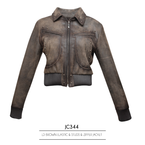 LD BROWN ELASTIC & STUDS & ZIPPER JACKET